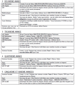 A ces frais annuels, s’ajoutent les éventuels voyages scolaires (entre 300€ et 750€) et la liste de matériels et équipements à acheter (frais obligatoires). Cette liste est distribuée avec le bulletin de juin et est variable d’une année scolaire à l’autre mais également d’une année d’études à l’autre (pour les futurs premières, elle est envoyée début juillet). L’école fournit gratuitement le journal de classe. Si il est perdu en cours d’année, le cout du nouveau journal de classe sera de 6€.